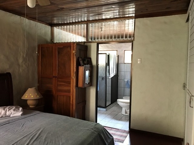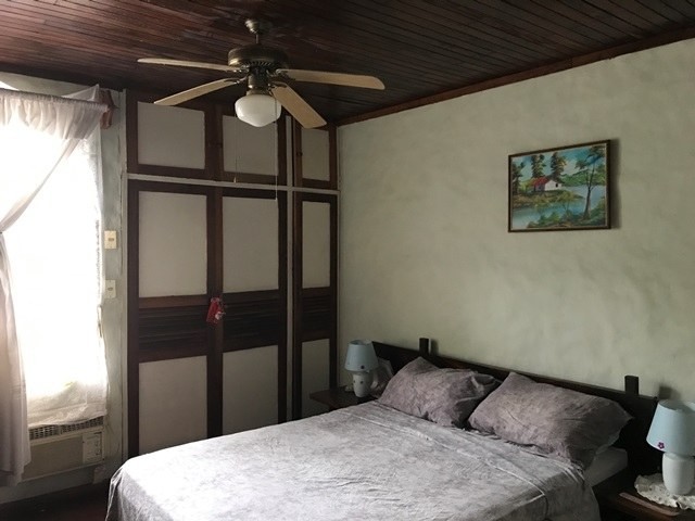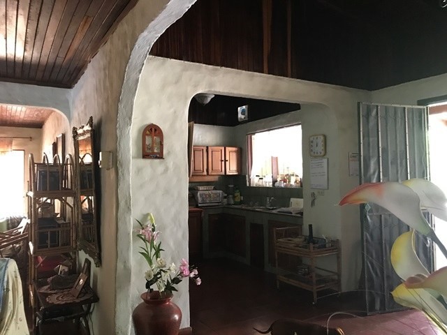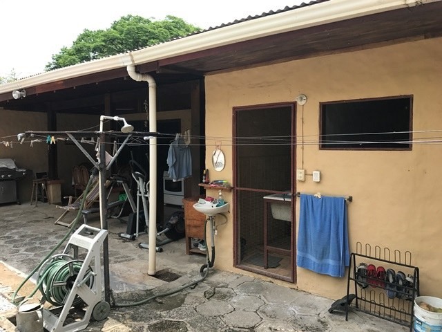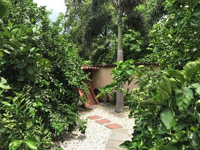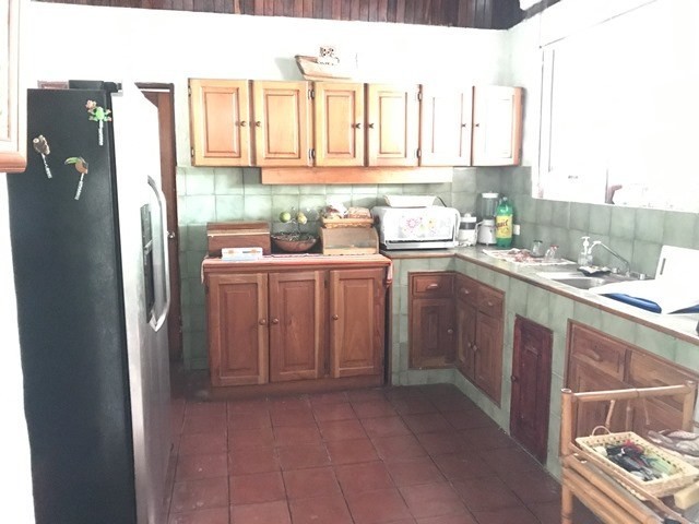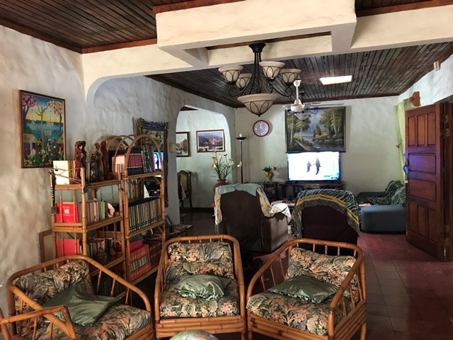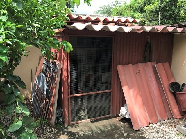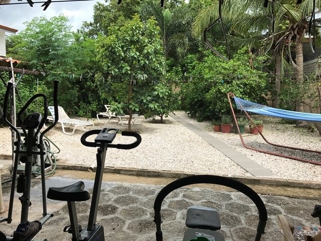 The house consists of three rooms with closet and ceiling fans, two bathrooms, an open living room, dining room, kitchen with wood furniture, an internal light patio, an outside covered terrace, laundry room, closed garage with electric gate for a Vehicle, an outside wine cellar and an exterior rear garden that has a variety of fruit trees, ideal to spend afternoons at rest and tranquility. It is completely constructed in block, with the ceiling in zinc, details in wood in ceiling, windows, doors.