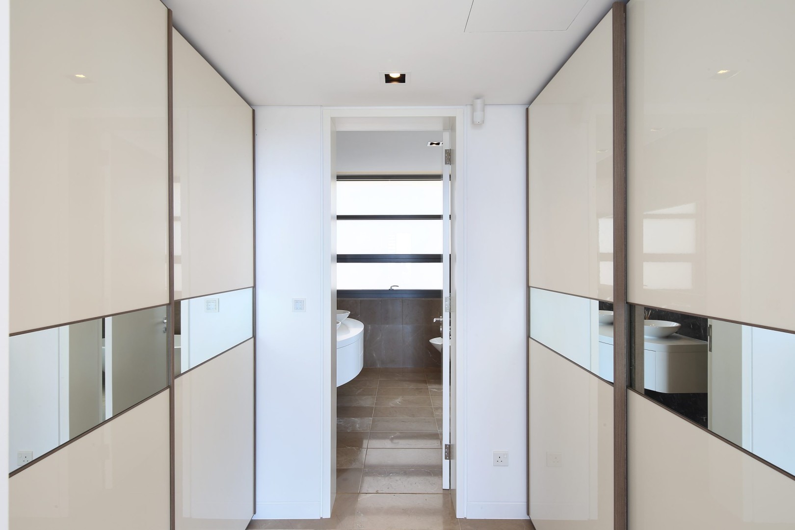 A dramatic all-glass entrance welcomes you to Harmonia, a home arranged around its striking feature pool. The elegant master suite opens out onto the pool terrace and spectacular views, and fireplace separates the kitchen and living area.