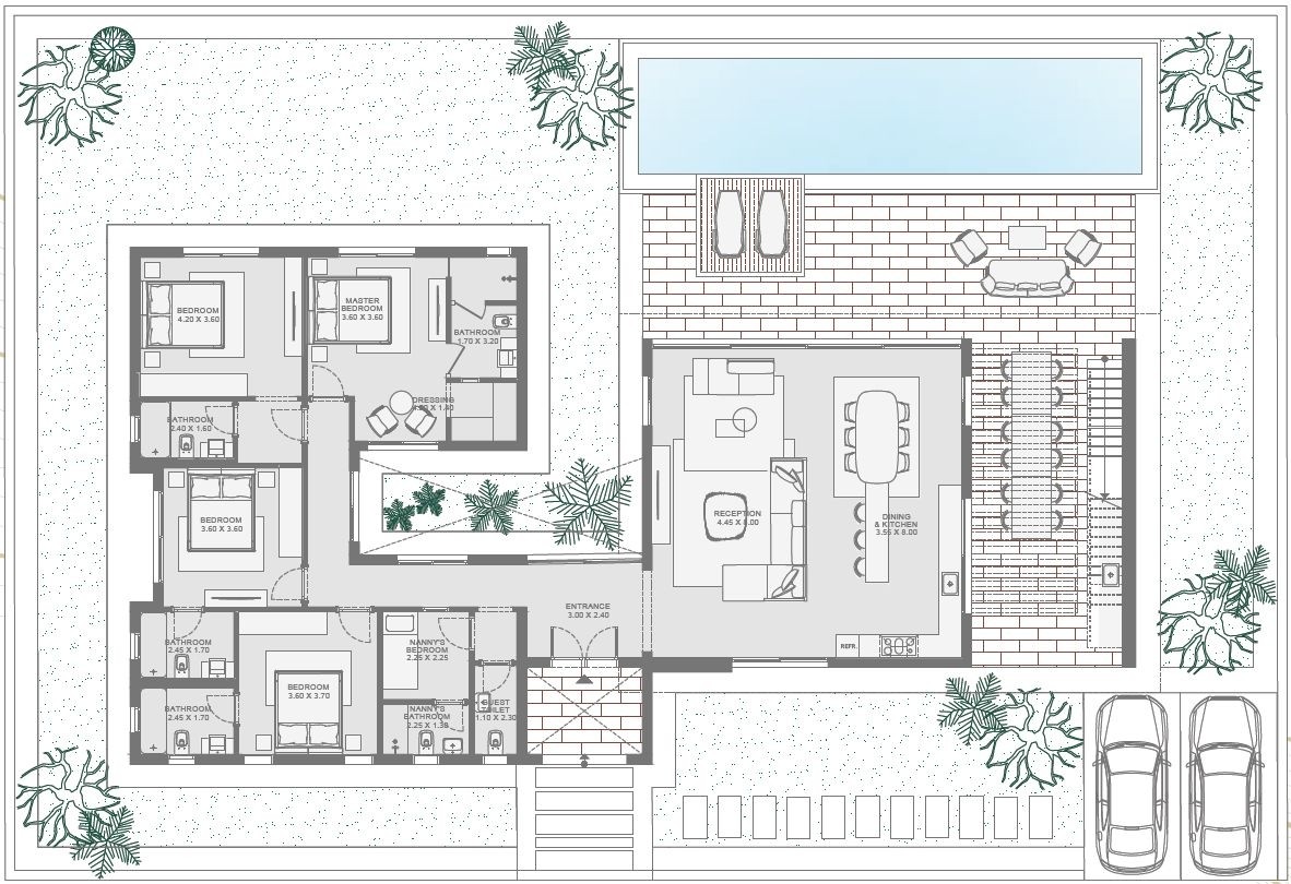 Garden area: 300 Sq.M in average