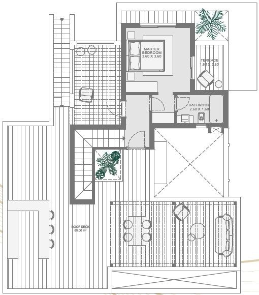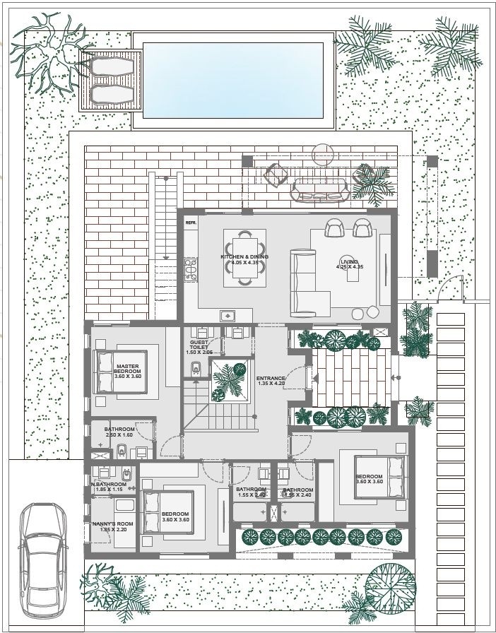 Standalone villa is on 2 floors ( ground with garden + first floor with roof)
