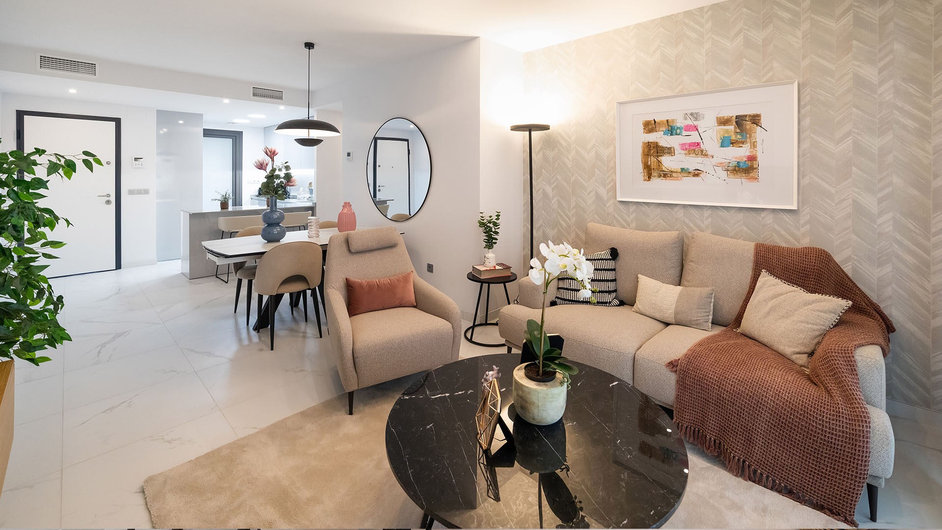 The Style by TM presents modern homes that have balconies and terraces with glass railings to allow more light, whilst providing a feeling of spaciousness. All homes have an aerothermal air conditioning and DHW system, as well as electric underfloor heating in the bathrooms. You can choose between two types of properties: Excellence and Premium.