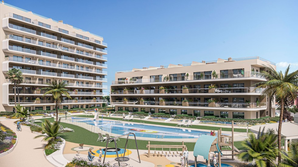 The Style by TM offers everything you�ve been looking for - a modern lifestyle where you can enjoy your free time by the sea, in a relaxing environment, with a wide range of leisure and services on your doorstep. A residential project located in the Pau 5 area of San Juan Beach (Alicante), just 300 metres from the beach promenade. The Style by TM has a total of 190 homes with 2 and 3 bedrooms with 2 bathrooms, 4 bedrooms with 3 bathrooms, and penthouses with solariums. The development offers excellent communal amenities including an interior garden with artificial grass and flower beds, swimming pools for adults and children, a games pool, 2 Jacuzzis, a fully-equipped gym, a paddle tennis court, a children's play area, a multipurpose room and a mini-court sports centre. Furthermore, in order to guarantee maximum peace of mind, The Style by TM is surrounded by a perimeter wall, has a gatehouse concierge, and a video intercom for access. Show off your new home in one of the best areas of San Juan beach!