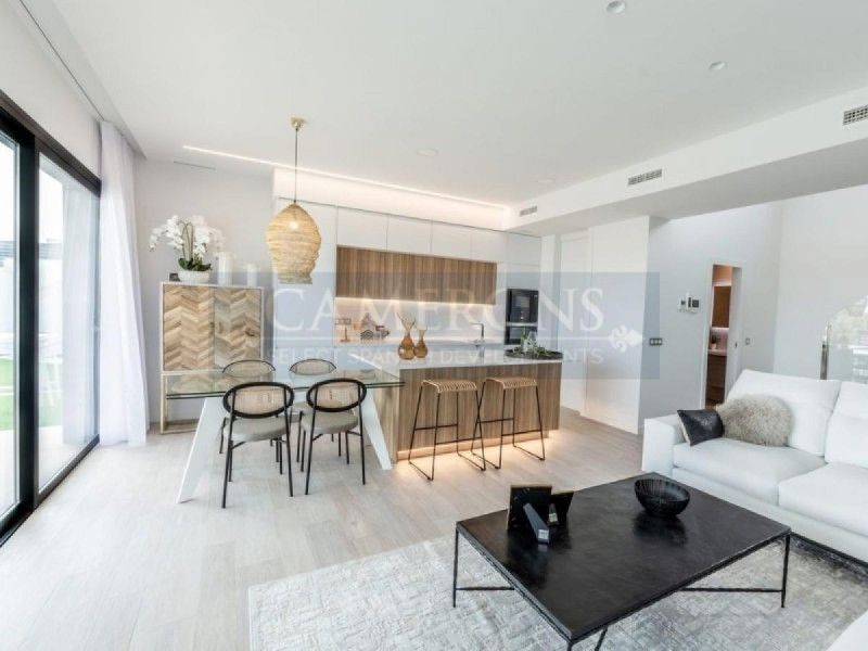 Model 'NEW GREEN' - it's a well-known model GREEN, but including a guest house. There are 17 villas of this type for sale. The villa is built on two floors. On the ground floor, there is a bright living room, with large windows and direct access to the pool (optional) and garden, bedroom and bathroom. On the first floor, there are two suite rooms, with access to an open terrace. There is also private parking and a green area.The separate guest house is built on the same plot on one floor, boasting one bedroom and bathroom, besides this, there is a cosy terrace with access to the main villa and garden area.Located in the hills overlooking Benidorm and close to the town of Finestrat in a privileged location between the sea and mountains, Campana Garden is close to many facilities like professional golf courses, large and beautiful beaches, leisure areas, theme parks, water parks, culture, camping, hiking and nature areas and much more. Alicante airport is just a 30-minute drive away. Beaches like 'Poniente' and 'Levante' are two strips of golden sand, more than 6 km long, ideal for water sports and tan. Enjoy of the most visited beaches in Europe and theb est in CostaBlanca. Numerous professional golf courses very close to Campana Garden. Some of them are Sierra Cortina Pich & Pat, Villaitana Golf, Las Rejas Pich & Pat, : Enjoy one of the most rewarding sports in the area Mundomar, Aqualandia and Terra Mitica are among the many theme parks in the area, where you can enjoy with your friends, family, couple and the most adventurous Puig Campana (Finestrat) is the second highest mountain of Alicante with amazing views from the top. And Sierra Helada (Benidorm) is a large mountain formed mostly by limestone and at night, when the moon reflects on it, it looks like ice.