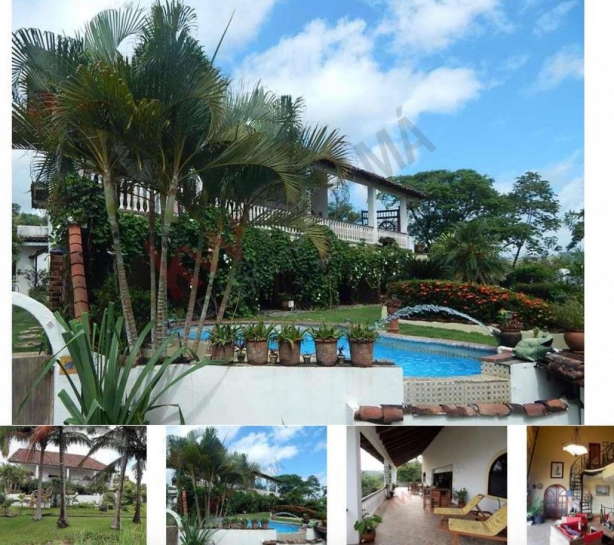 The primary home has 3 en-suite bedrooms and a third floor office and den (with clever storage for a water tank behind bookshelves), and an enormous covered patio, pool with fountain and beautifully landscaped grounds with flowering vines. Also included: