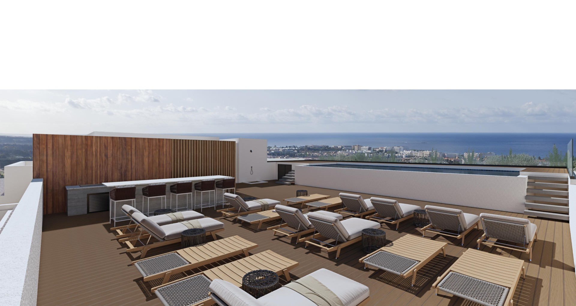 Step outside onto the rooftop garden and discover an oasis of leisure and relaxation.  Take a refreshing dip in the communal swimming pool while soaking in panoramic views. Whether you're basking in the warm Mediterranean sun or enjoying a leisurely swim beneath the azure skies, every moment spent at Celestia is infused with a sense of tranquility and rejuvenation.