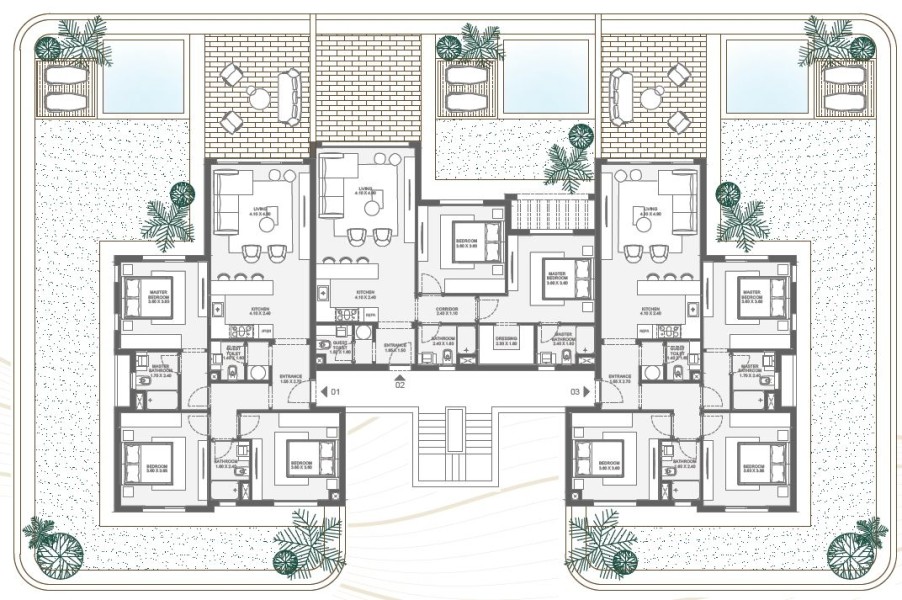 Garden area: 300 Sq.M in average