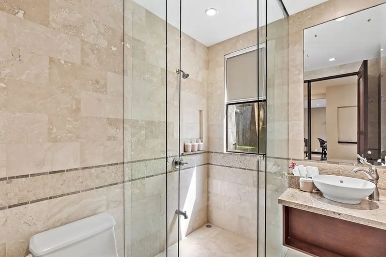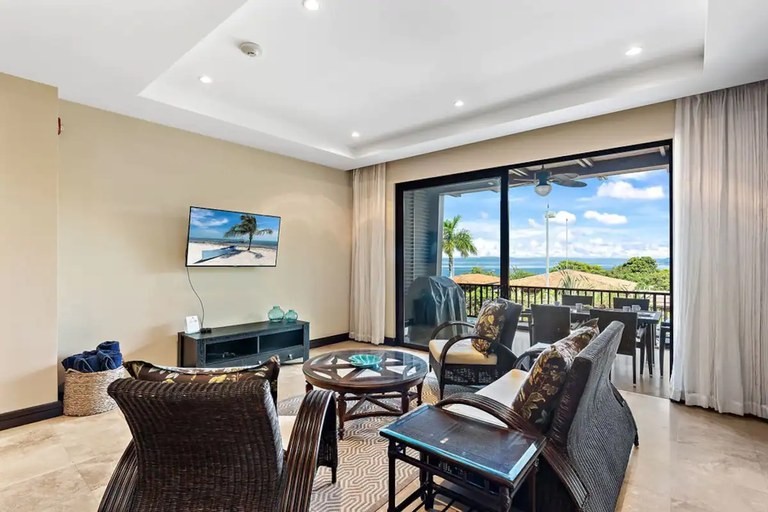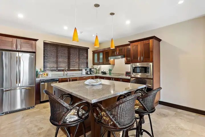 Along with breathtaking sunsets this condo features a top-of-the line chef’s kitchen, complete with stainless steel GE Profile appliances and comes with all the cooking utensils you will need. The kitchen also has eat-in breakfast island and opens beautifully into the living area, which opens—via large sliding glass doors—to a huge terrace with dramatic views of the ocean.