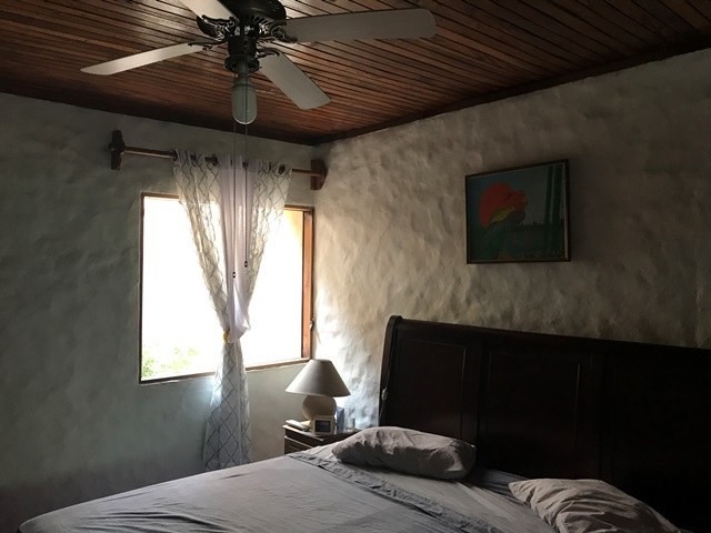 The house consists of three rooms with closet and ceiling fans, two bathrooms, an open living room, dining room, kitchen with wood furniture, an internal light patio, an outside covered terrace, laundry room, closed garage with electric gate for a Vehicle, an outside wine cellar and an exterior rear garden that has a variety of fruit trees, ideal to spend afternoons at rest and tranquility. It is completely constructed in block, with the ceiling in zinc, details in wood in ceiling, windows, doors.