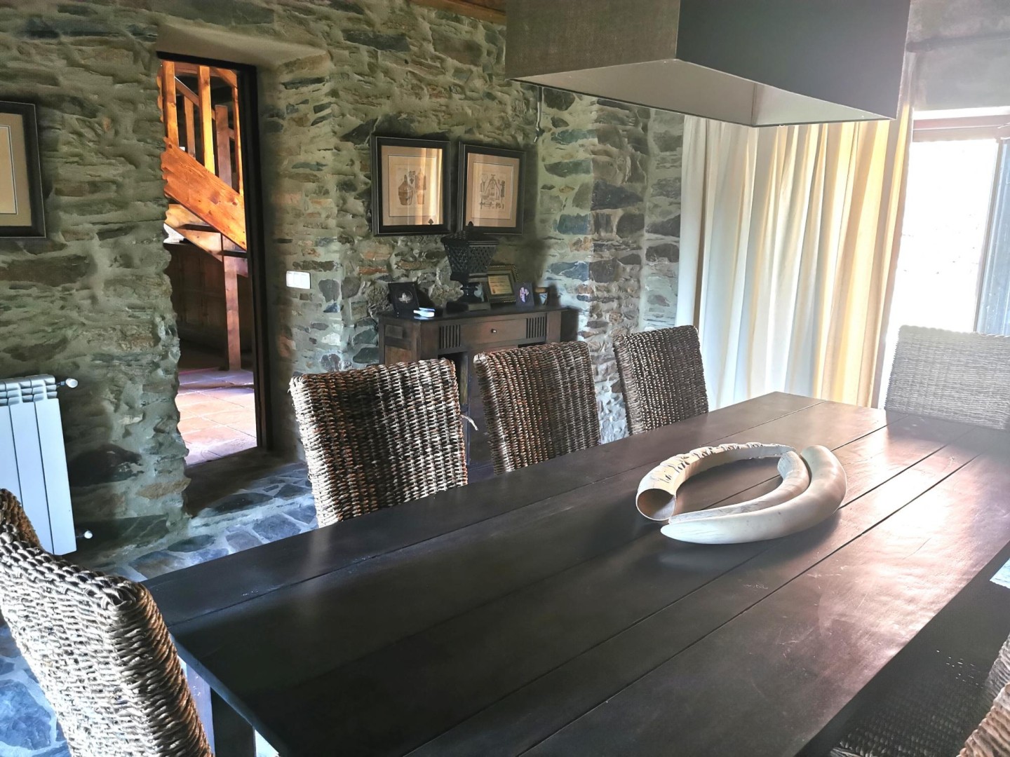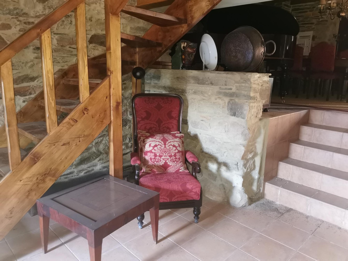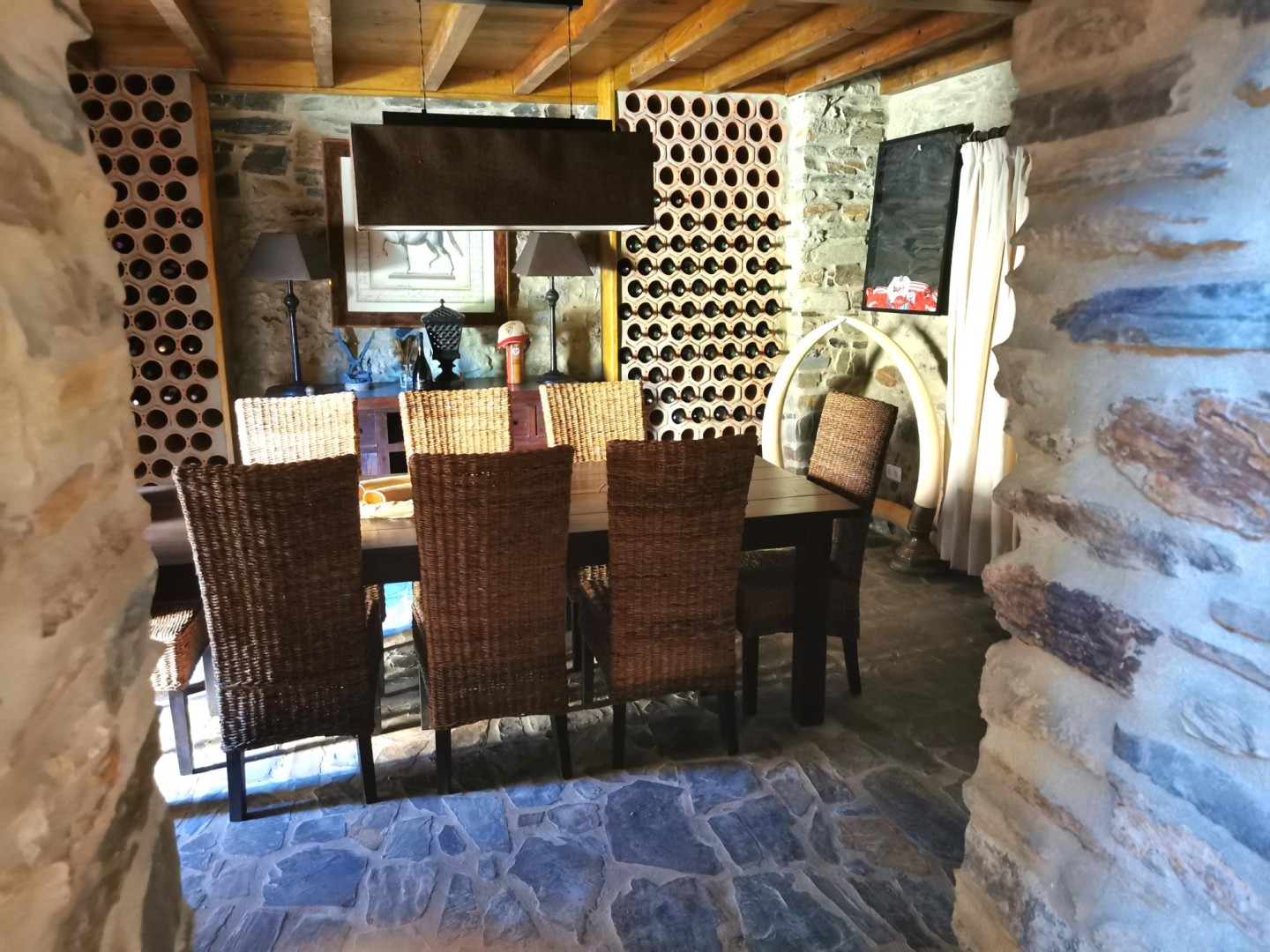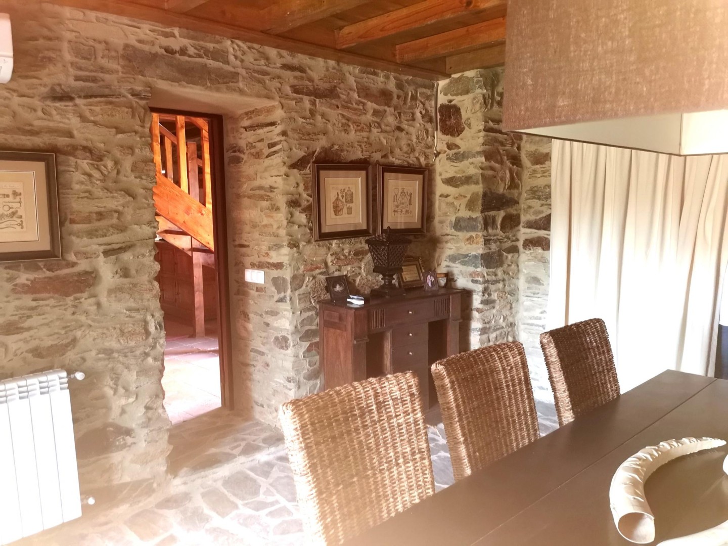 Entrance hall, fully equipped kitchen, living room with wine cellar installed, and dining area.
