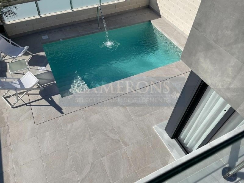 New project of detached villas in Los Altos, on the border between Torrevieja and Orihuela Costa, offering the best of both municipalities. Just a short drive from the fantastic Punta Prima beach, and only 10 from the complex is the incredible Zenia Boulevard shopping centre, as well as a choice of four championship golf courses.The project offers detached villas on two floors, with 3 bedrooms and 2 bathrooms, as well as a spacious basement/garage. The open and bright ground floor comprises a combined lounge, dining area and kitchen, which opens onto a large terrace and private pool area. The master bedroom, with private bathroom and walk-in closet, is also on the ground floor, as well as a guest toilet. There are 2 bedrooms and a bathroom on the first floor, and a terrace overlooking the pool. The basement/garage of 60m2 can be used as required.The villas include pre-installation for split A/C in the lounge and bedrooms, fitted wardrobes, garden with artificial grass, private pool, and parking on the premises.