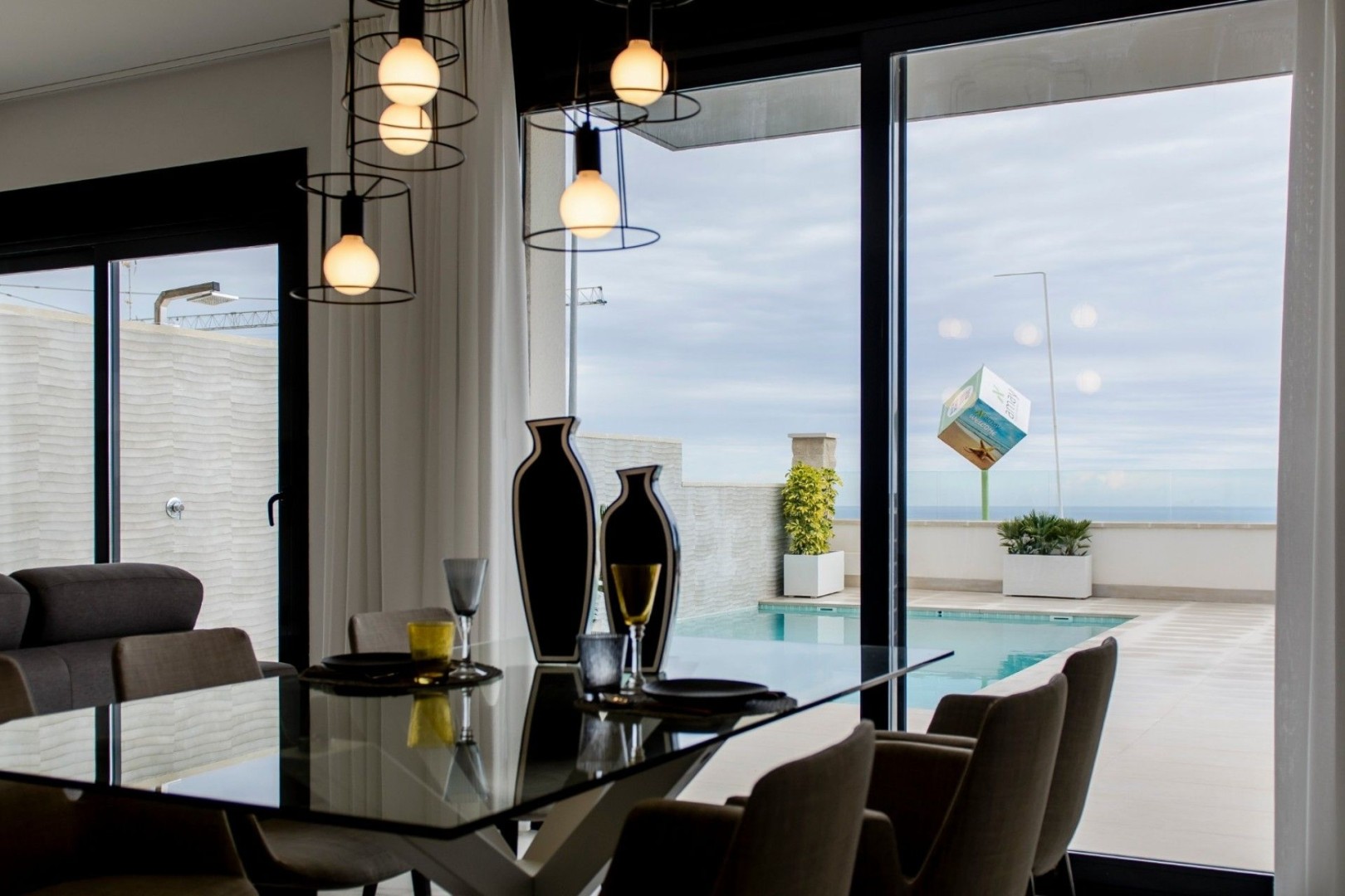 Villas with 3 bedrooms and 2 bathrooms in San Miguel de Salinas. Large living room with open kitchen. Private pool, large terrace and parking.
