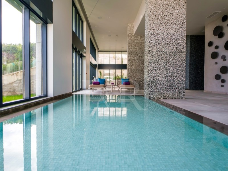 The development has a swimming pool for children and another for adults outside and also has an indoor pool.